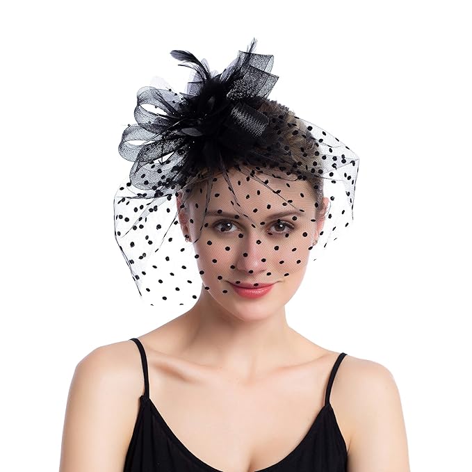 Seven Flowers Fascinator Feather Fascinators For Women Pillbox Hat For Wedding Party Derby Royal Banquet Black