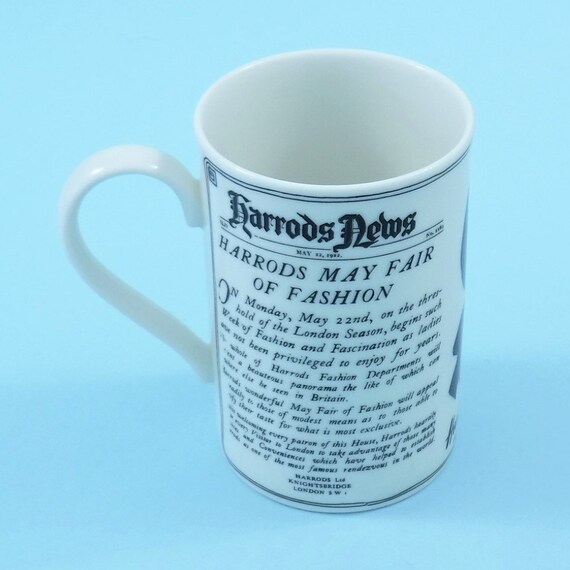 Vintage Black White China Harrods News Mug By Dunoon Ceramics