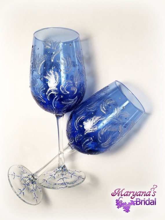 Blue Silver Wine Wedding Glasses W Charms Bows Silver Navy Toasting Glasses Royal Blue Silver Wedding Glasses Frozen Wedding Martini Glasses