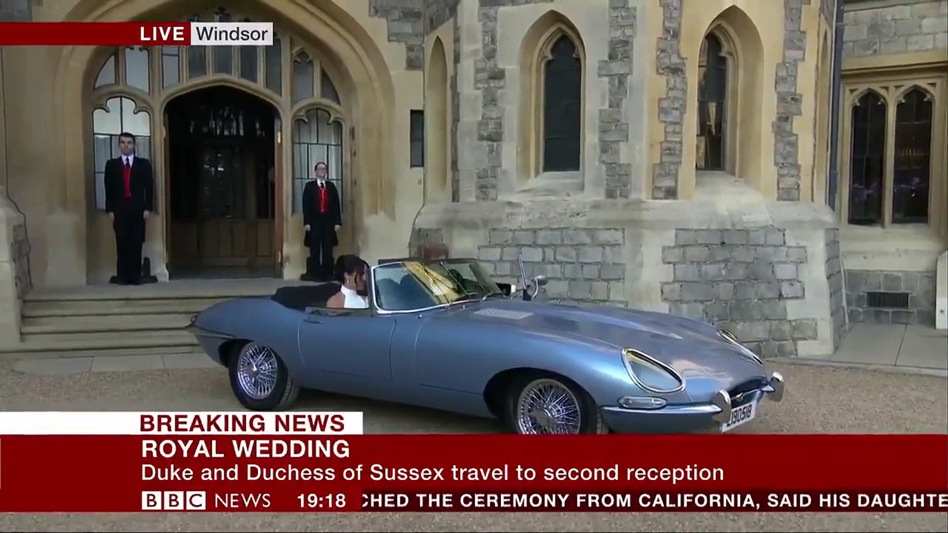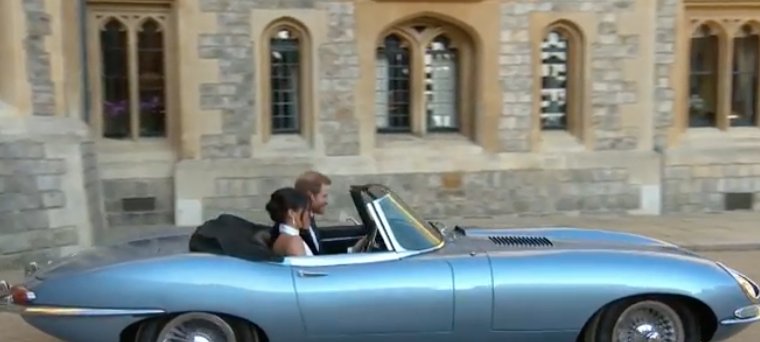 Duke And Duchess Of Sussex Depart In Jaguar For Wedding Reception