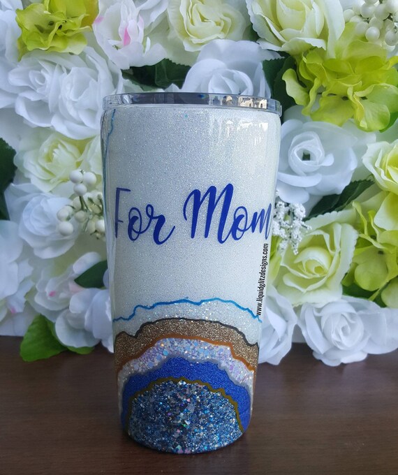 Royal Blue White Gold Geode Glitter Yeti Tumbler Coffee Travel Custom Personalized Stainless Steel Cup Classic 20 Oz Shown