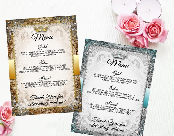 Printable Wedding Menu Fairytale Wedding Printable Gold And