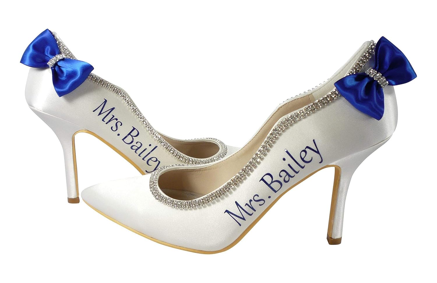 Amazon Com Royal Blue Bow Wedding Heels In Ivory And Custom
