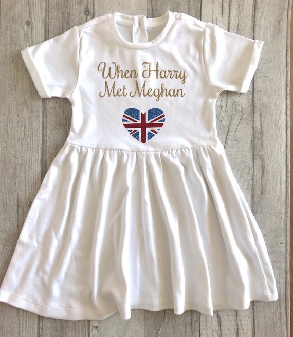 When Harry Met Meghan Royal Wedding Theme Girl S Cotton Summer White Dress Short Sleeve Gold Baby Girl Dress Princess Gift Present Love