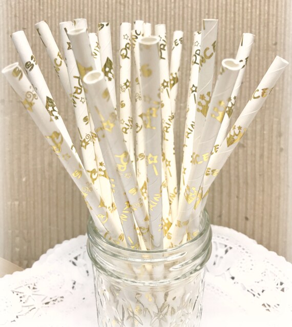 Gold Princess Straws Gold Crown Paper Princess Party Girl Royal Themed Wedding Shower Cake Pop Sticks