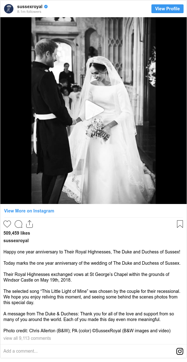 The Duke And Duchess Of Sussex Celebrate Their One Year
