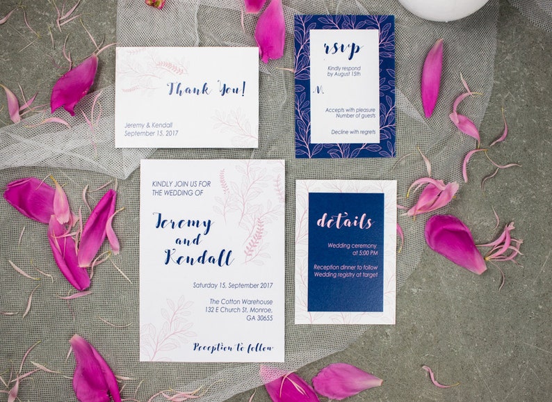 Blush Pink And Navy Blue Wedding Printed Invitation Pink Blush Wedding Invitation Template Royal Blue Wedding Invite Printable Stationery