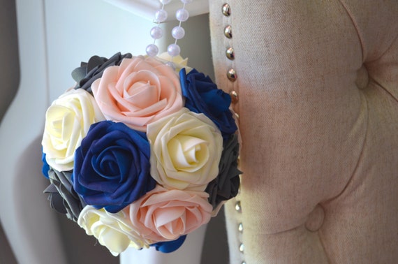 Ivory Grey Pink Blush Royal Blue Wedding Foam Flower Balls With Pearl Handle Wedding Decor Flower Girl Choose Your Rose Colors