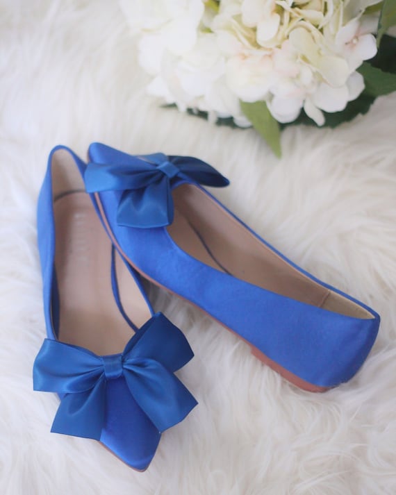 Royal Blue Satin Pointy Toe Flats With Satin Bow Women Wedding Shoes Bridesmaid Shoes Something Blue