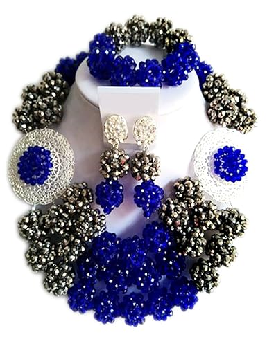 Laanc Jewelry 8 Rows Royal Blue Multicolor Gradient Crystal African Beads Nigerian Wedding Jewelry Sets Royal Blue Silver