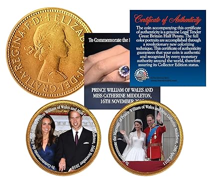 Royal Wedding Prince William Kate British Half Penny 24k Gold 2 Coin Set