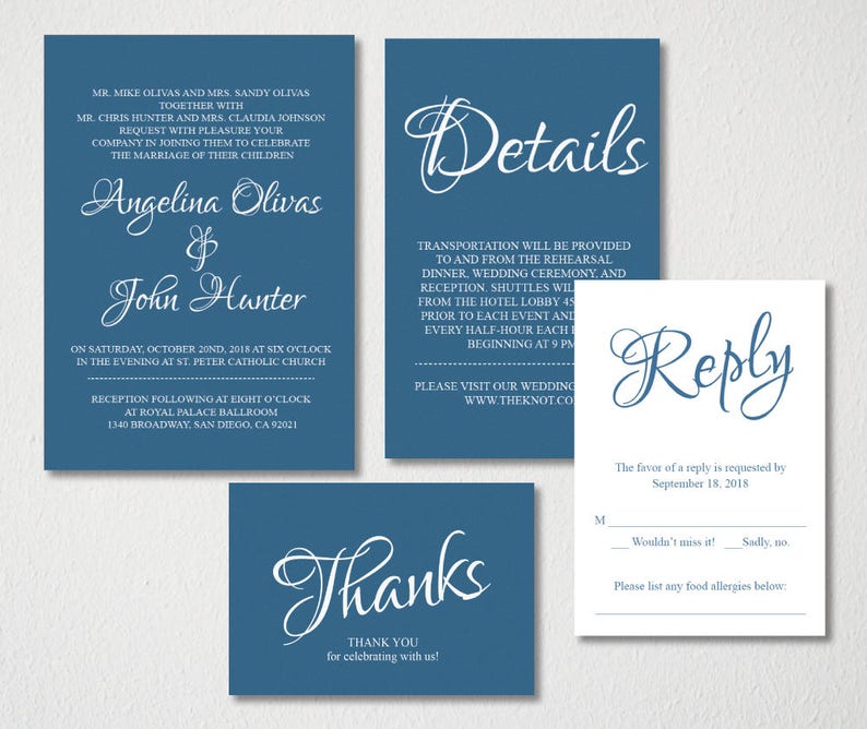 Blue Wedding Invitation Wedding Invitation Template Wedding Invite Royal Blue Wedding Invitation Mr And Mrs Wedding Kit Wedding Set 5
