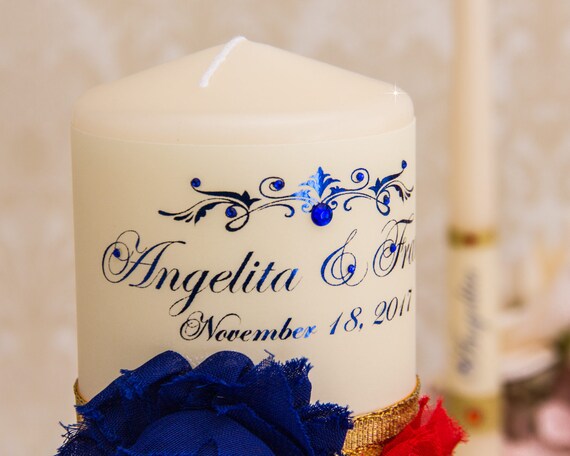 Unity Candle Set Royal Blue Red And Gold Wedding Unity Candles Personalized Unity Candle Unique Unity Candle Set